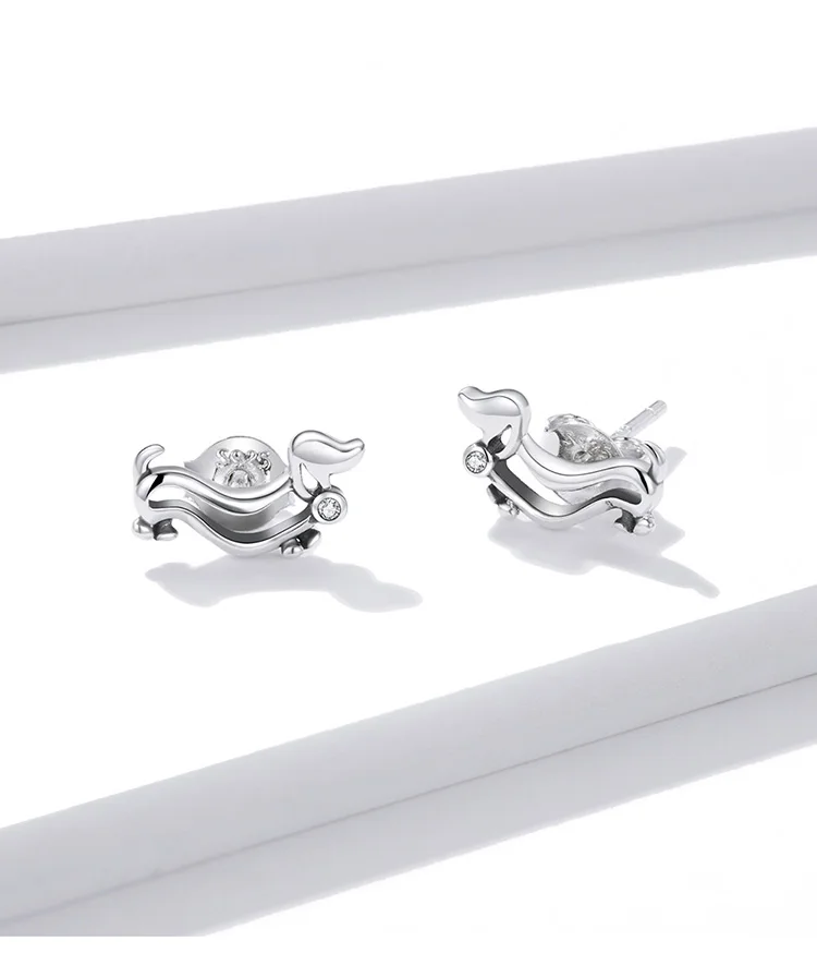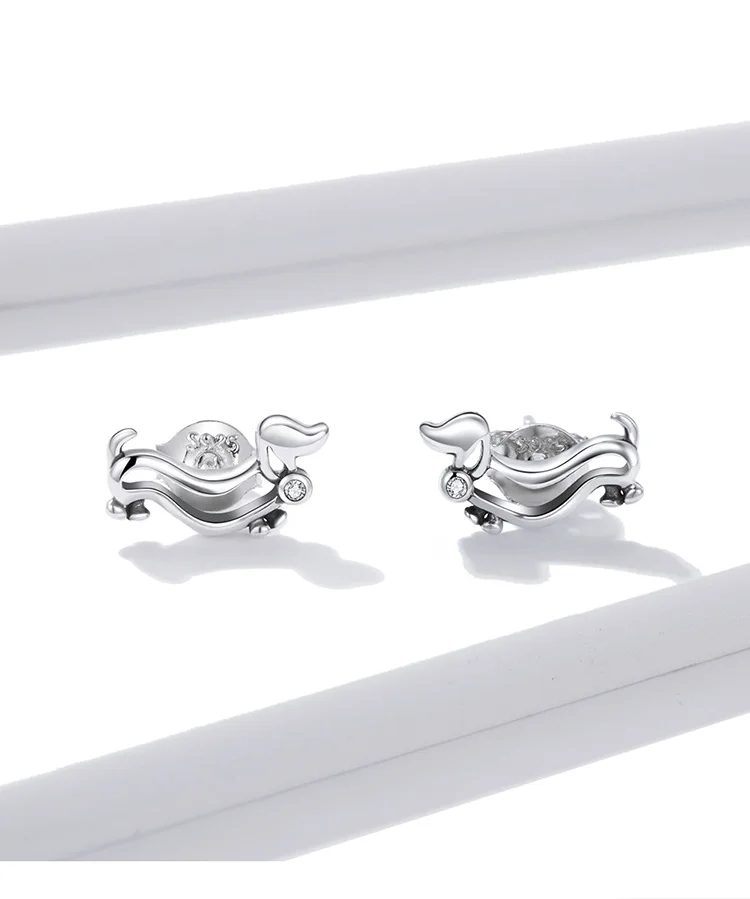 Женские серьги-гвоздики из серебра 925 пробы с щенком