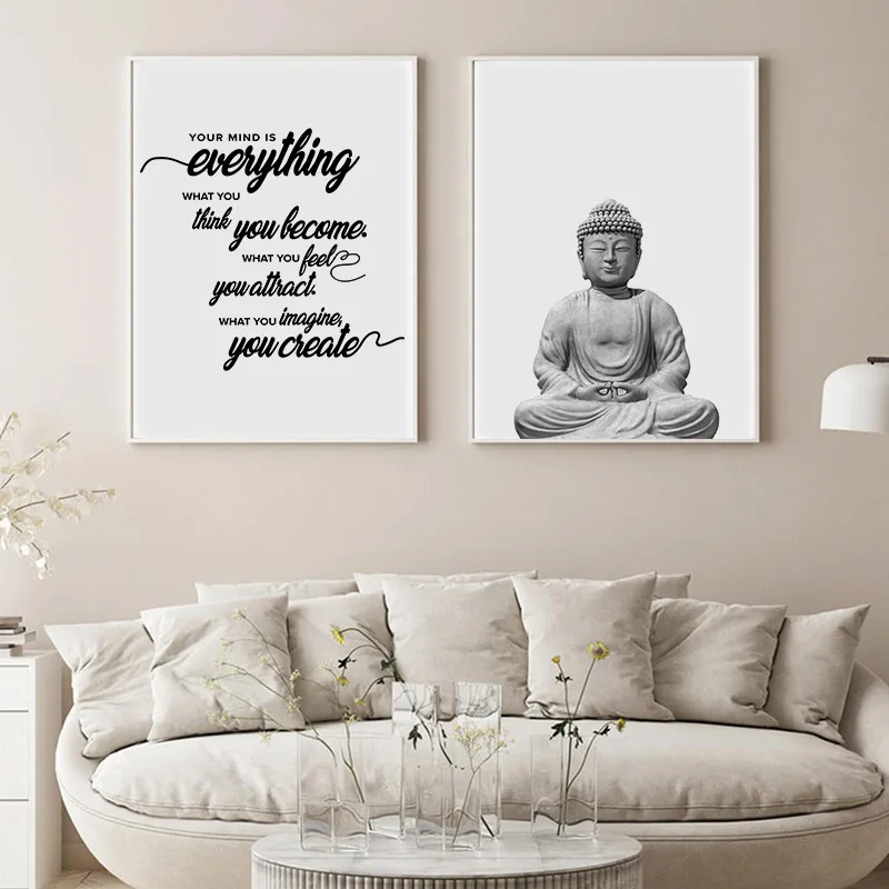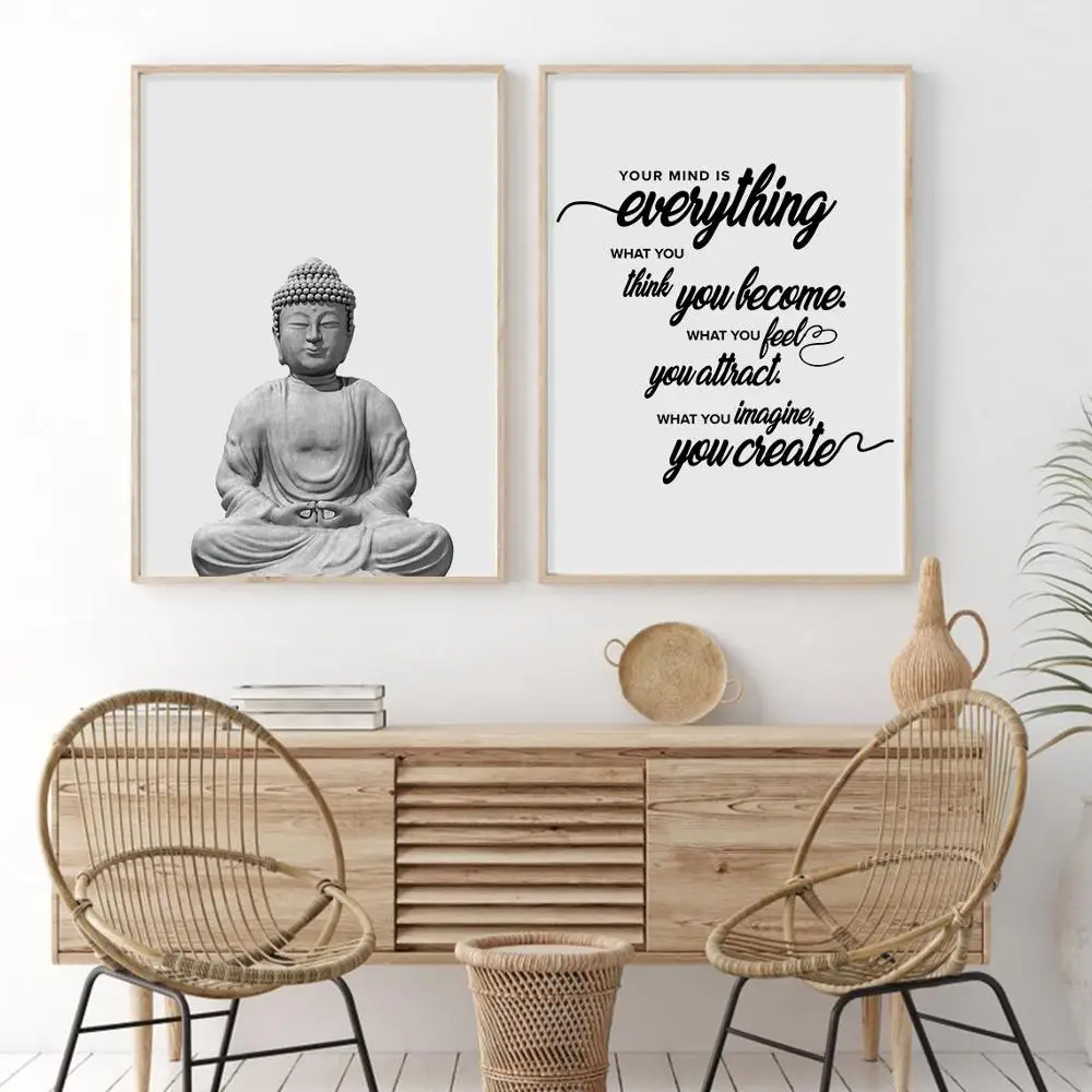Статуя Дзен Будды, холст, настенная печать, мотивационные цитаты, плакат, черная белая картина, картина буддизма, Современное украшение для дома