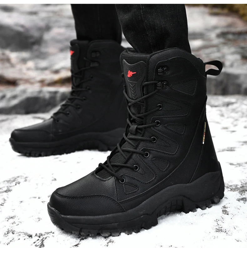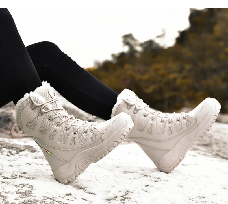 Мужские ботинки со шнуровкой, зимние теплые ботинки с высоким берцем, водонепроницаемые, Нескользящие ботинки до щиколотки, армейские рабочие ботинки