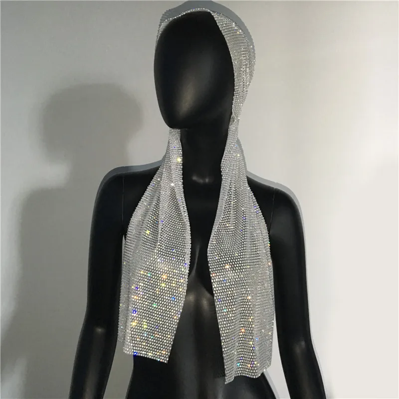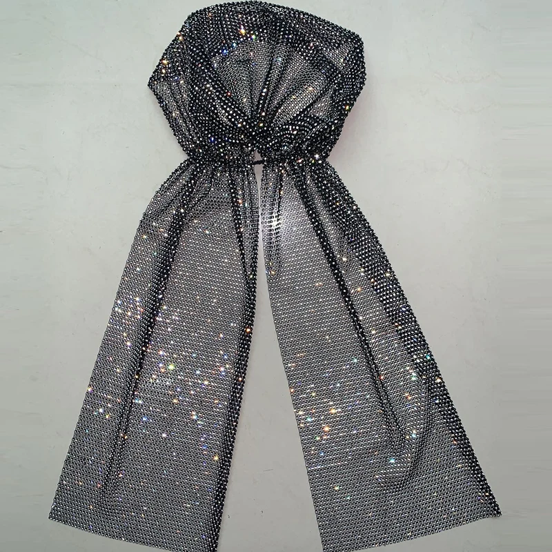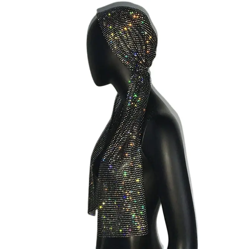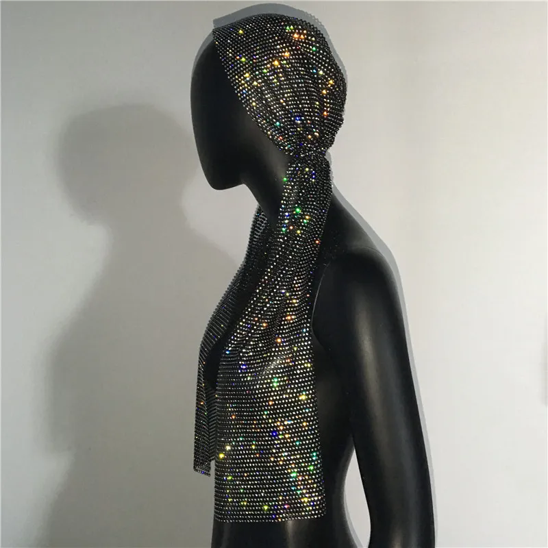 Новинка 2022, Модный Блестящий Прозрачный головной платок Стразы со стразами, Модный черный блестящий головной платок знаменитости, аксессуары для женщин