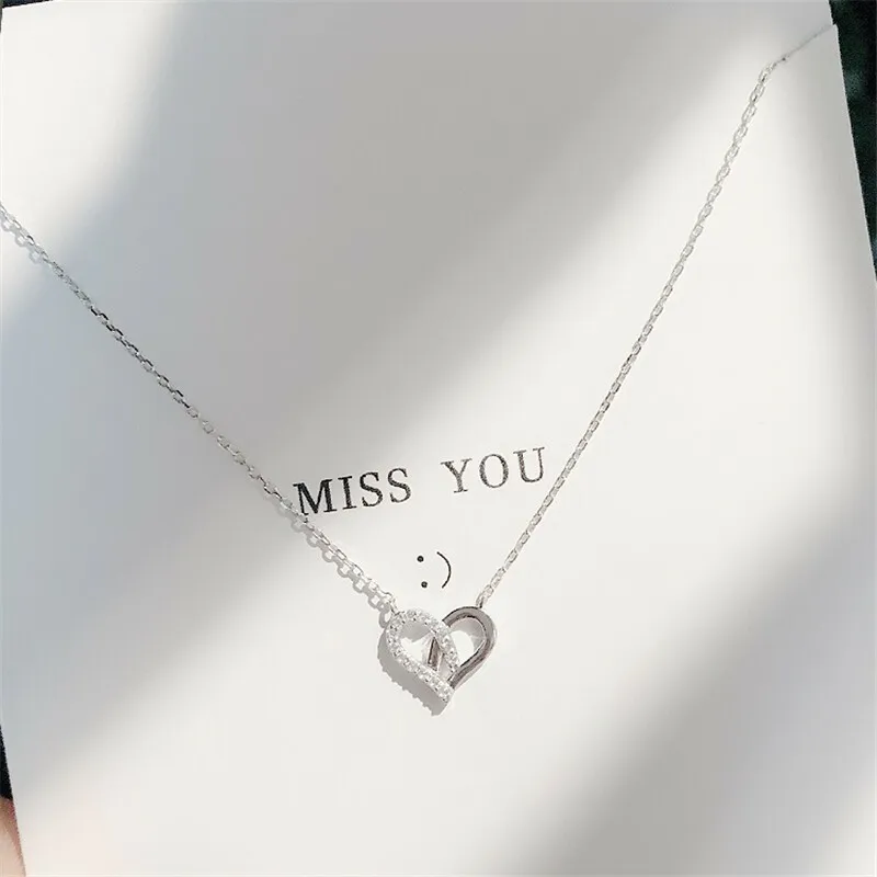 Ожерелье из стерлингового серебра 925 пробы с полым кубическим цирконием и сердцем короткое до ключиц для девушек и женщин
