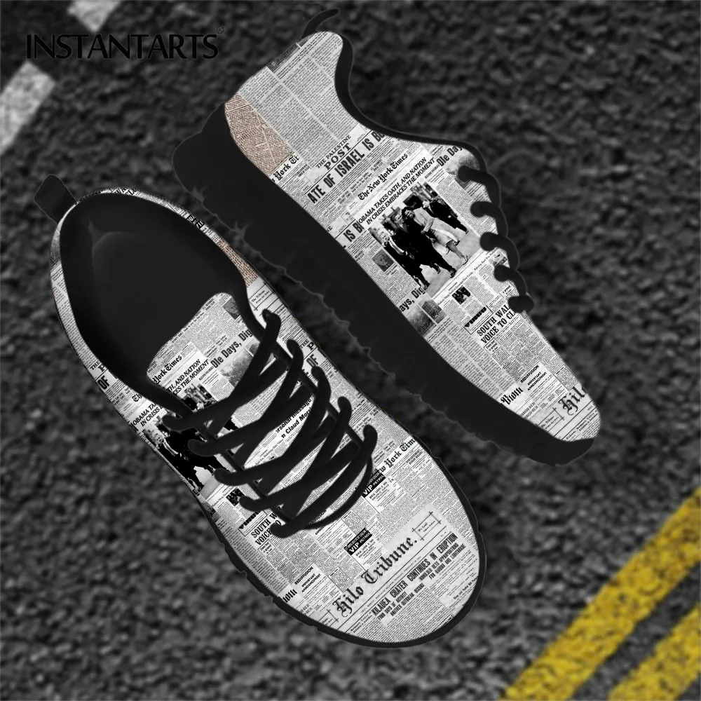Женские сетчатые кроссовки INSTANTARTS, винтажные повседневные легсветильник кроссовки с газетным принтом, дышащая обувь на плоской подошве для прогулок