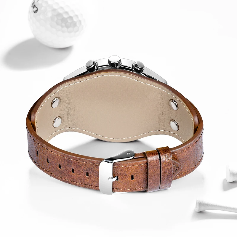 Мужские кварцевые часы с календарем, коричневым кожаным ремешком