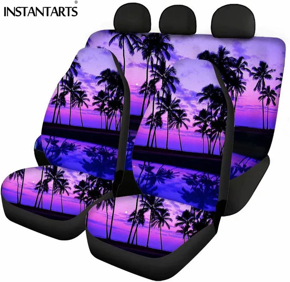 Чехол INSTANTARTS для передних и задних сидений, противоскользящий чехол с рисунком пальмы и Луны, пальмы, заката, растягивающийся чехол для салона автомобиля