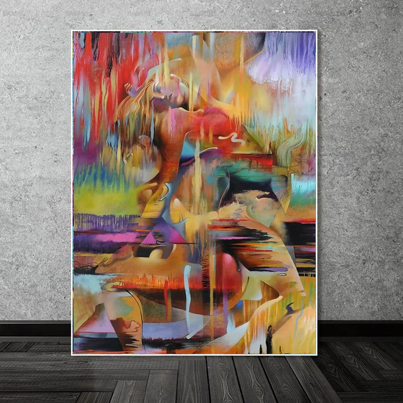 Абстрактные влюбленные, облегающие вместе холст, художественные принты, граффити, рисунок на холсте, художественные картины для гостиной