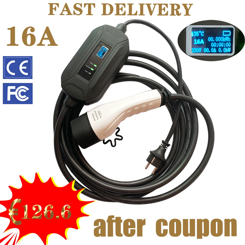 Зарядное устройство для электромобиля SAE J1772 тип 1 IEC62196 Тип 2 EVSE EV, EV портативное зарядное устройство 16 А штепсельная вилка европейского стандарта
