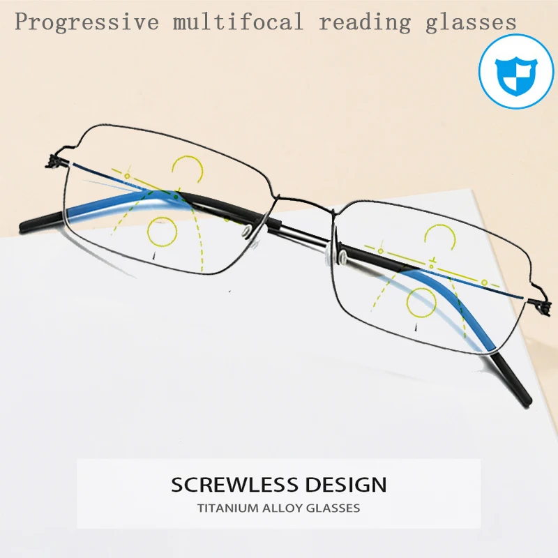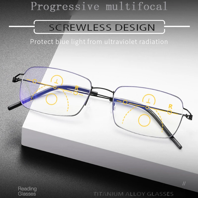 Очки для чтения без оправы с умным зумом, титановые прогрессивные о...