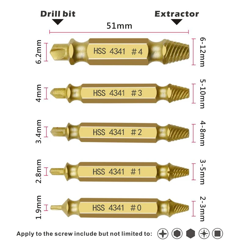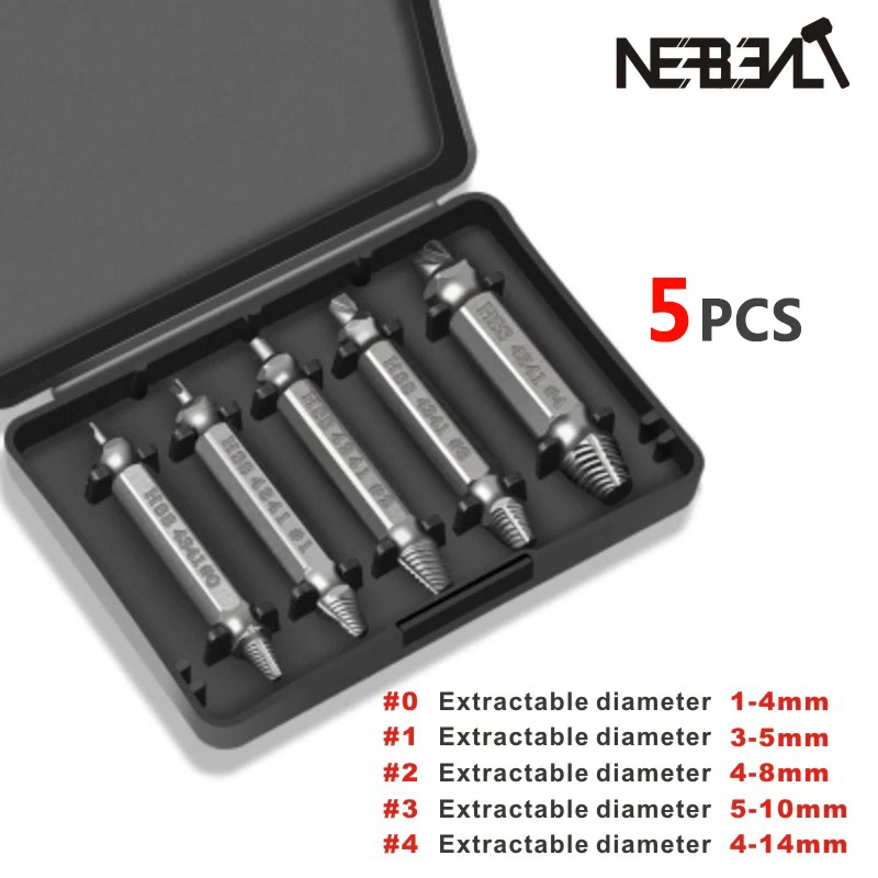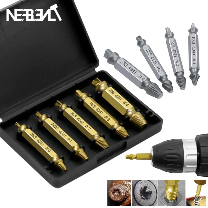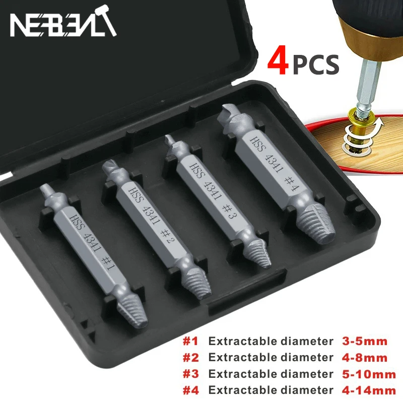 5 предметов в партии 4 шт. Двусторонняя дефекты материала поврежденный Винт экстрактор выталкивающий мастеров сломанный болт серьги-гвоздики для удаления ящик для инструментов с Чехол