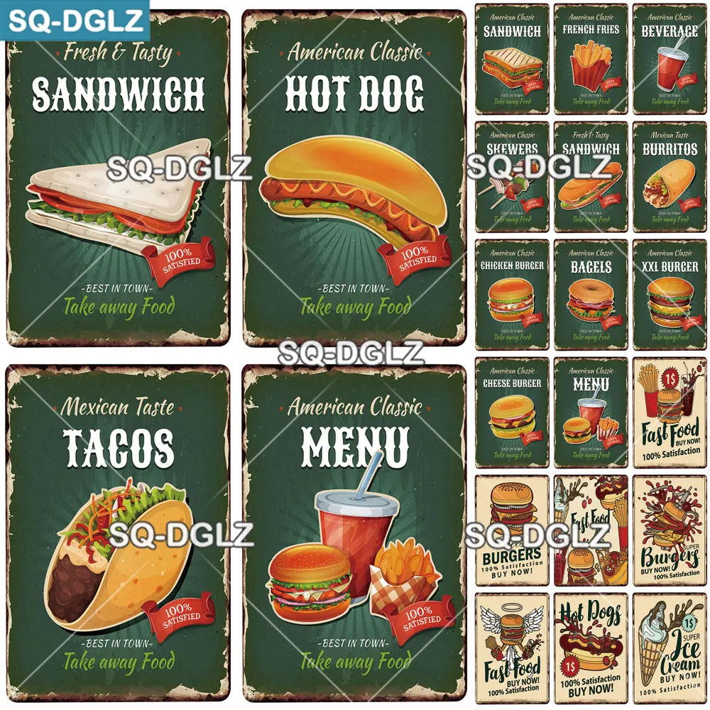 SQ-DGLZ Быстрая Еда металлический знак бар отделка стен жестяная вы...