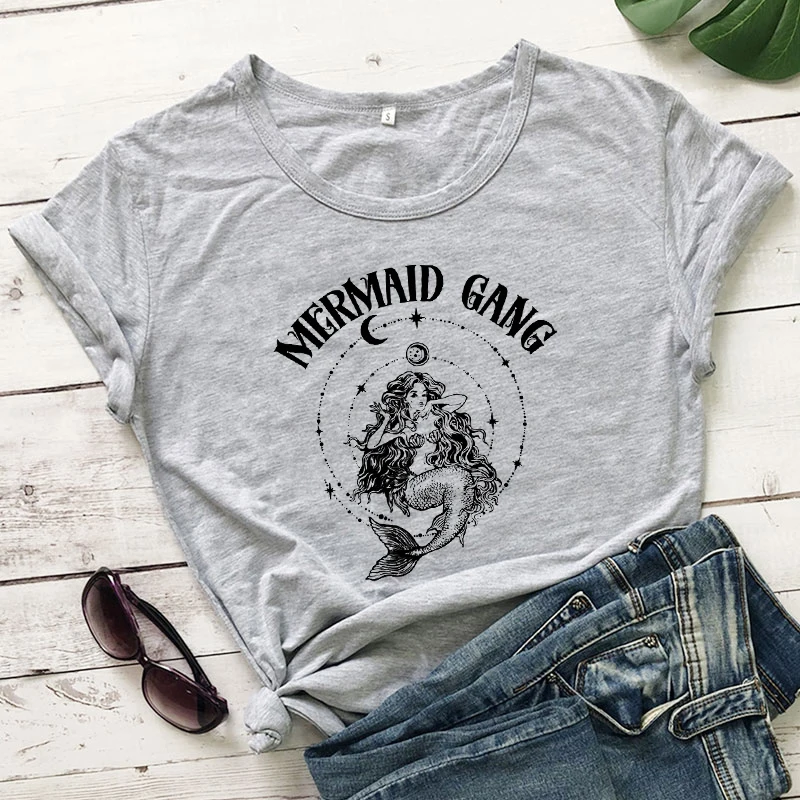 Женская хлопковая Футболка с принтом русалка, Летняя Пляжная футболка с графическим принтом Небесная Русалка в стиле бохо, 100%