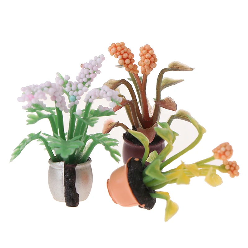 Миниатюрное зеленое мини-растение в горшке для кукольного домика 1:12, случайный выбор, 1 шт.
