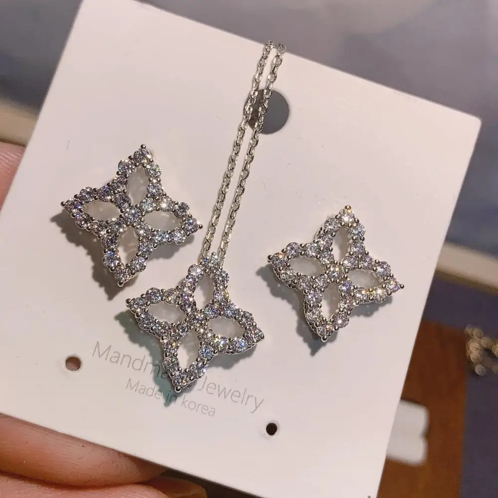 HIBRIDE Роскошный прозрачный кристалл циркония серьги и ожерелье на...