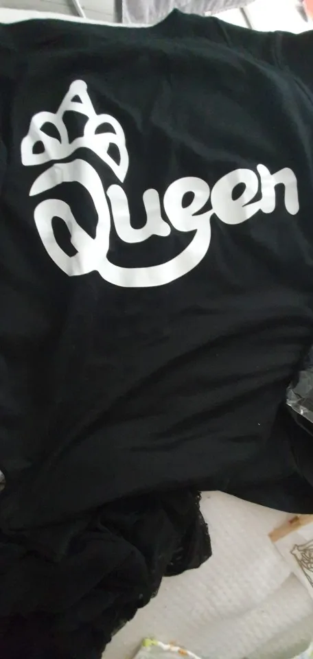 футболка хорошая, хлопок. Надпись приклеена. Сколько продержится не знаю, но смотрится хорошо . Размер М отлично сел, подходит на 46 р .