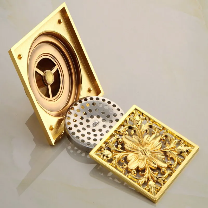 Полированная Золотая напольная дренажная латунная душевая напольная дренажная железная решетка для стока квадратной тротуарной плиты