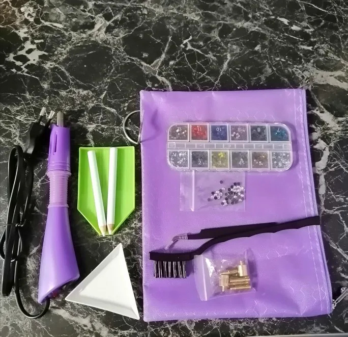 Замечательный набор! Работает. Давно мечтала о таком. Вилка хорошего качества . Стразы очень красивые. Щеточка жёсткая. Насадки доя страз пронумерованы. Всё хорошо упаковано. Сумочка для акссесуаров, удобная и практичная. Я очень довольна покупкой. Товар пришёл быстро. Продовца рекомендую.