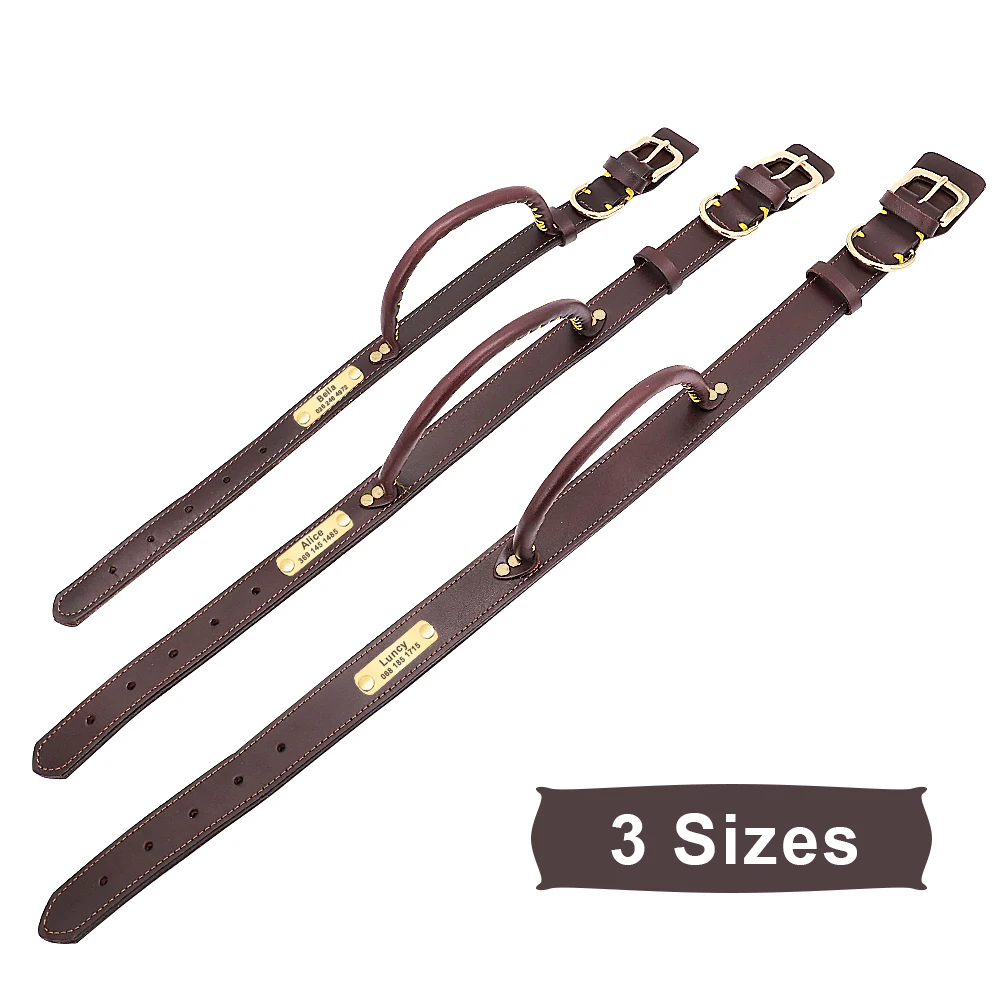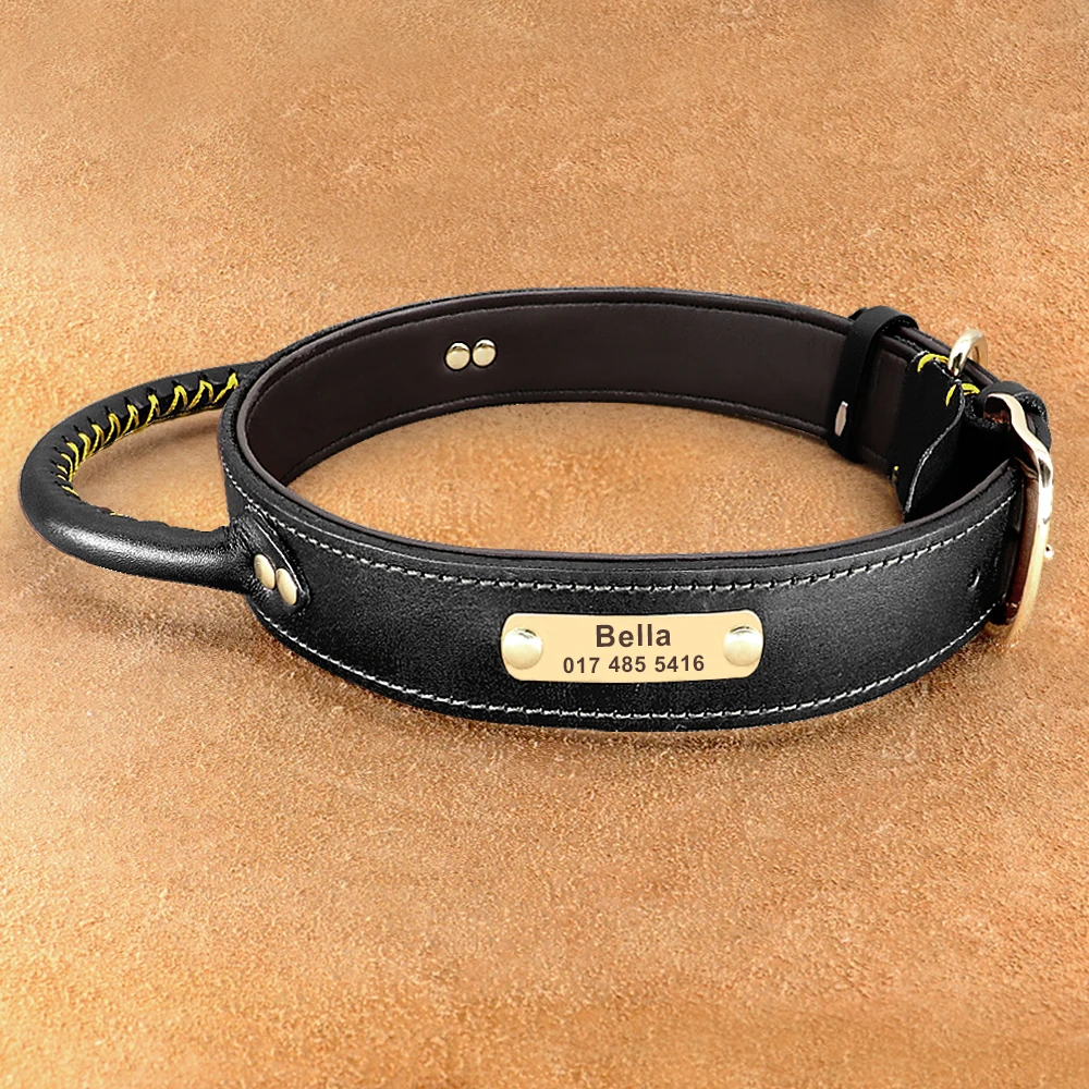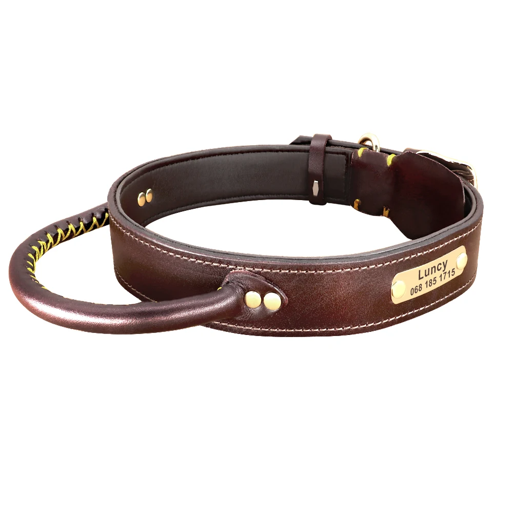 Кожаный ошейник для собак, персонализированная идентификационная бирка, ошейник с ручкой для тренировки питомцев, выгула, быстрый контроль