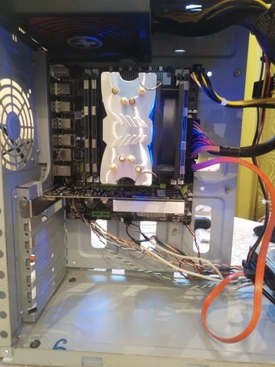 Покупал набор в феврале 2021г. Со скидками и промокодм вышло за 8.500р. Комплект шёл долго из за китайского нового года + почта России отдыхала 7 и 8 марта, вообщем открыл посылку начал рассматривать комплектующие. Процессор кстати не был установлен в сокет (возможно комплект и не проверяли на работоспособность, но это не факт) дк вот начинаю все рассматривать и замечаю что одна ножка 4пинового питания кулера проца погнута фото прилагаю (собственно на пупырке продоваец сэкономил слишком мало её было и плюс сама мать. гуляла в коробке). Значит все я вставил в свои места запитал новеньким БП ZALMAN Wattbit на 500w. Биос запустился но винда 7 отказалась запускаться, спустя какое-то время и времяпровождение в инете. Я все же запустил её (вообщем в биосе меняем режим sata с AHCI на IDE и все запускается). Потом накатывает все драйвера, вручную пришлось все ядра включать в винде и что бы был буст необходимо в питаний электроснабжения пошаманить. Вообщем с танцами с бубнами все работает.
