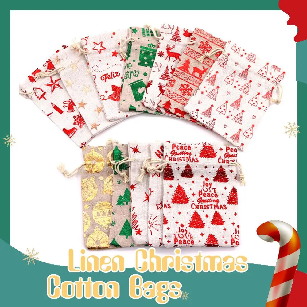 Рождественская Льняная сумка на шнурке, подарочные пакеты с принтом...
