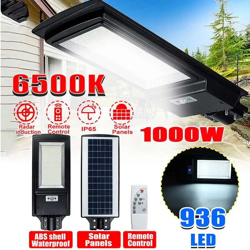 1000 Вт 936 светодиодный светильник на солнечных батареях настенный уличный светильник IP65 водонепроницаемый супер яркий радар PIR датчик движения Охранная лампа для наружного сада
