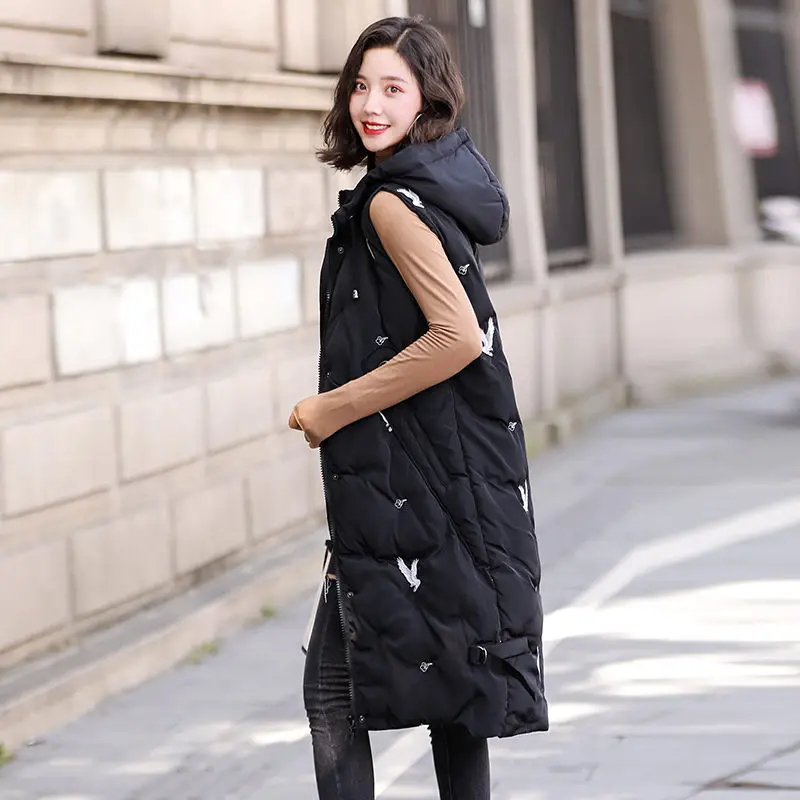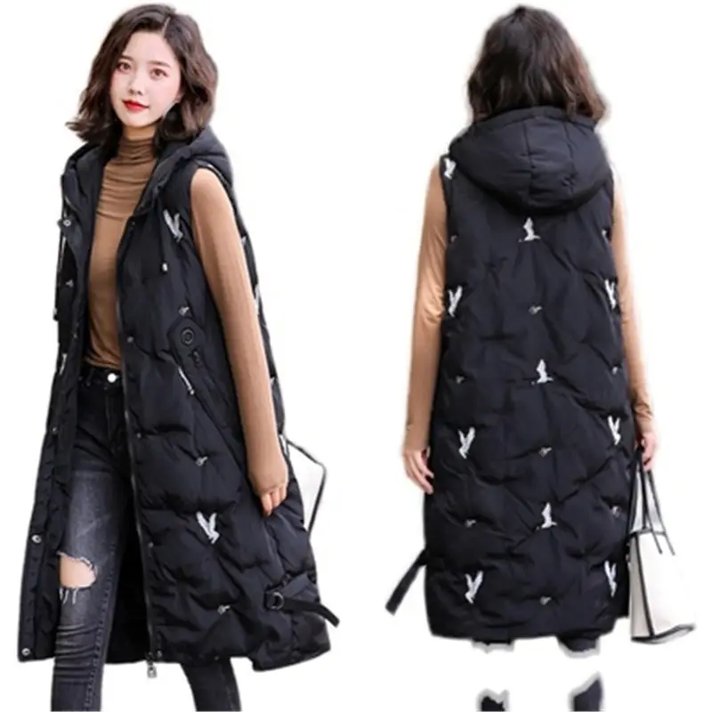 Новинка 2020, осенне-зимний женский жилет, Свободный жилет на молнии, без рукавов, с капюшоном, хлопковое пальто средней длины, вышитый Топ y331