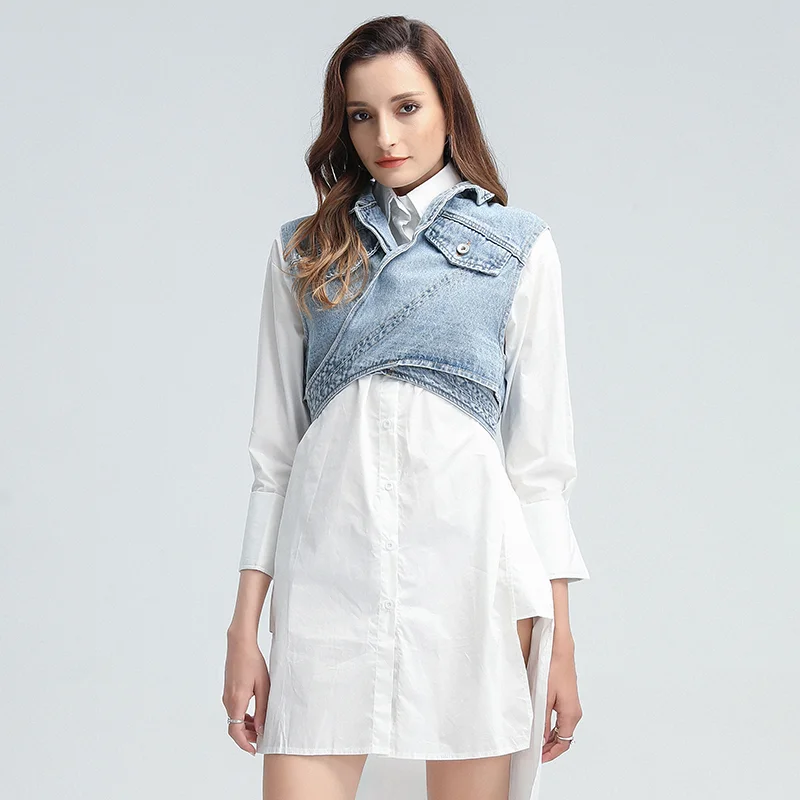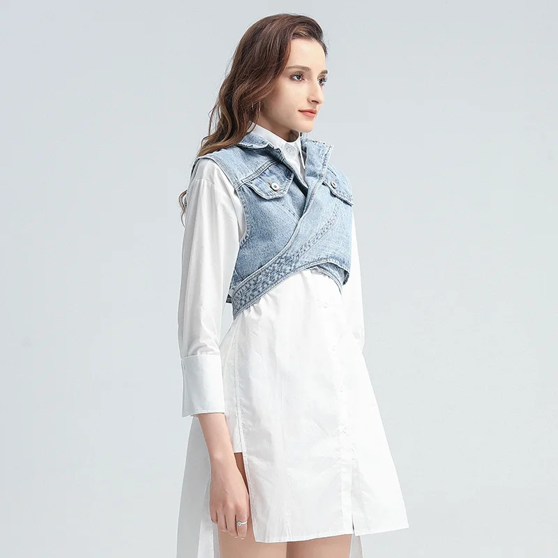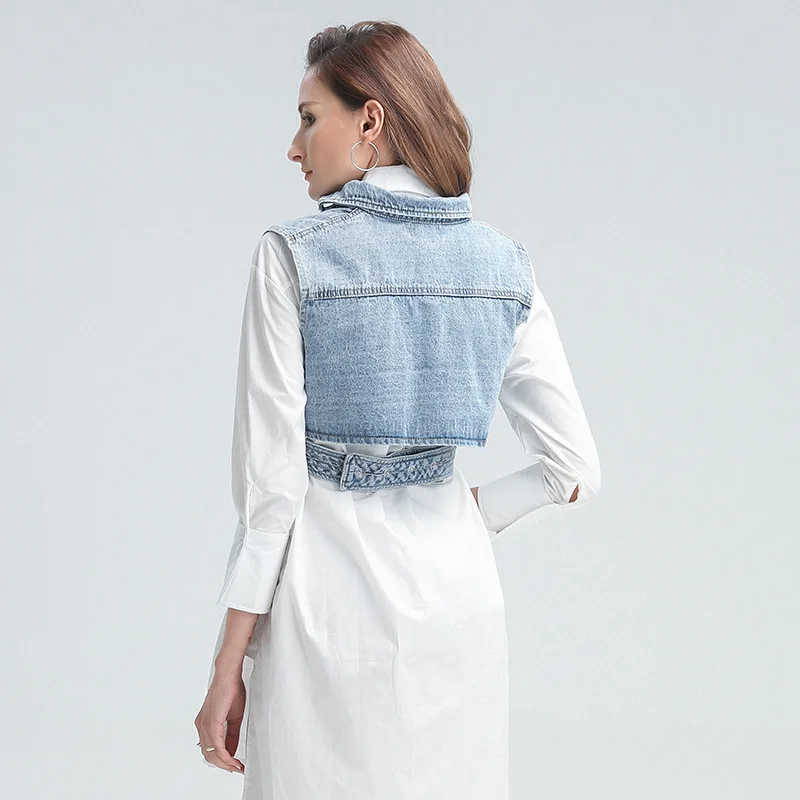 Женский джинсовый жилет DEAT, белая однобортная рубашка из хлопка, ...