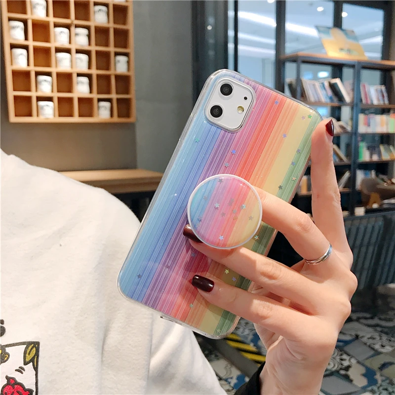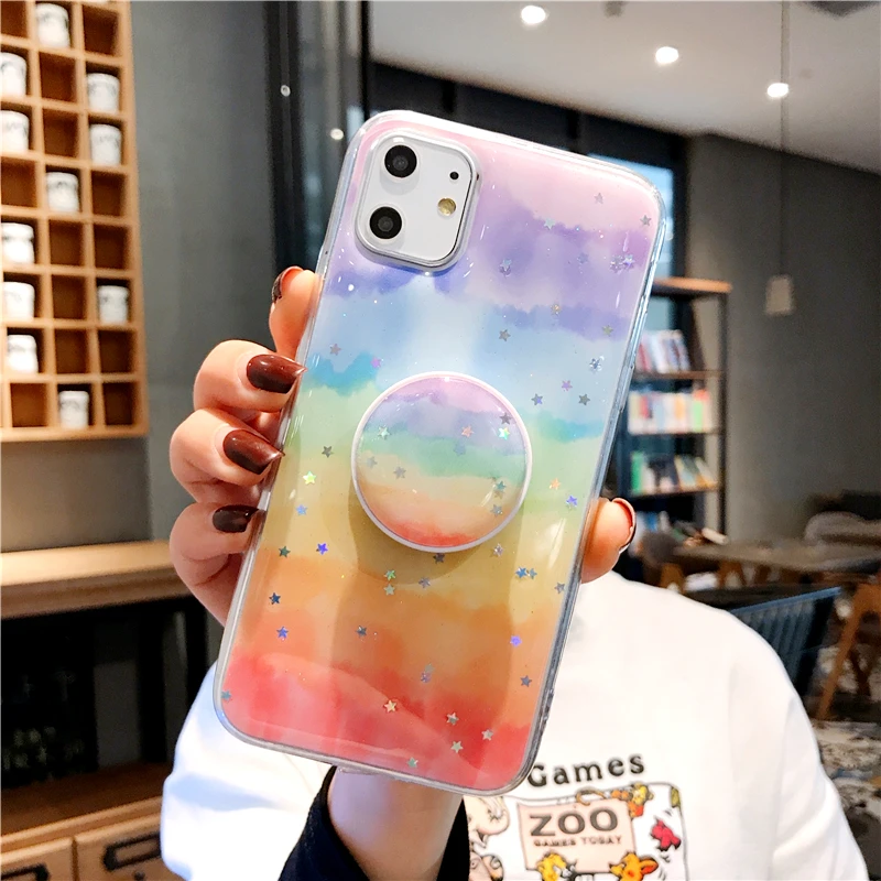 DIY Радужный чехол с кольцом-держателем для телефона iPhone 11 Promax XSMAX XR 7 8 Plus 6 6SPlu SE 2020, мягкие чехлы из ТПУ с блестками для iPhone 12
