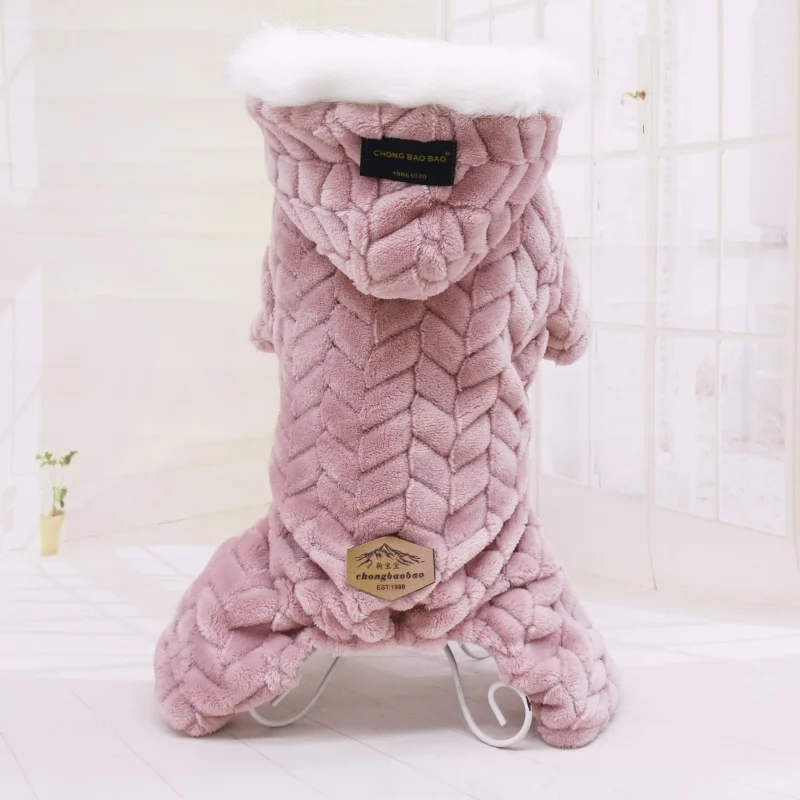 Зимняя Осенняя теплая одежда для домашних животных, большой меховой воротник, четырехногий утолщенный комбинезон для йоркширских звеньев