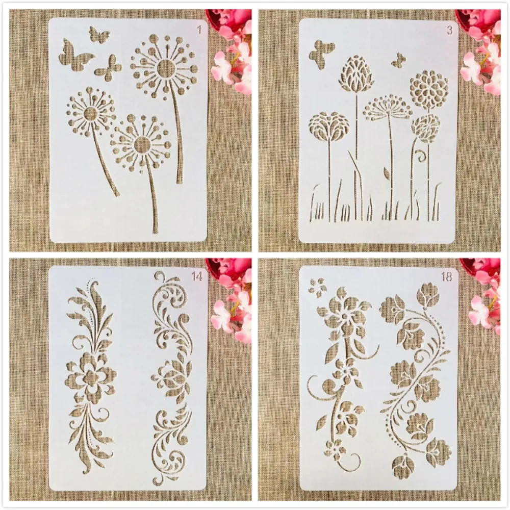 Трафареты для рисования, декоративные трафареты формата А4, 29 см, линия одуванчиков, раскраска для скрапбукинга, тиснильный альбом, 4 шт.