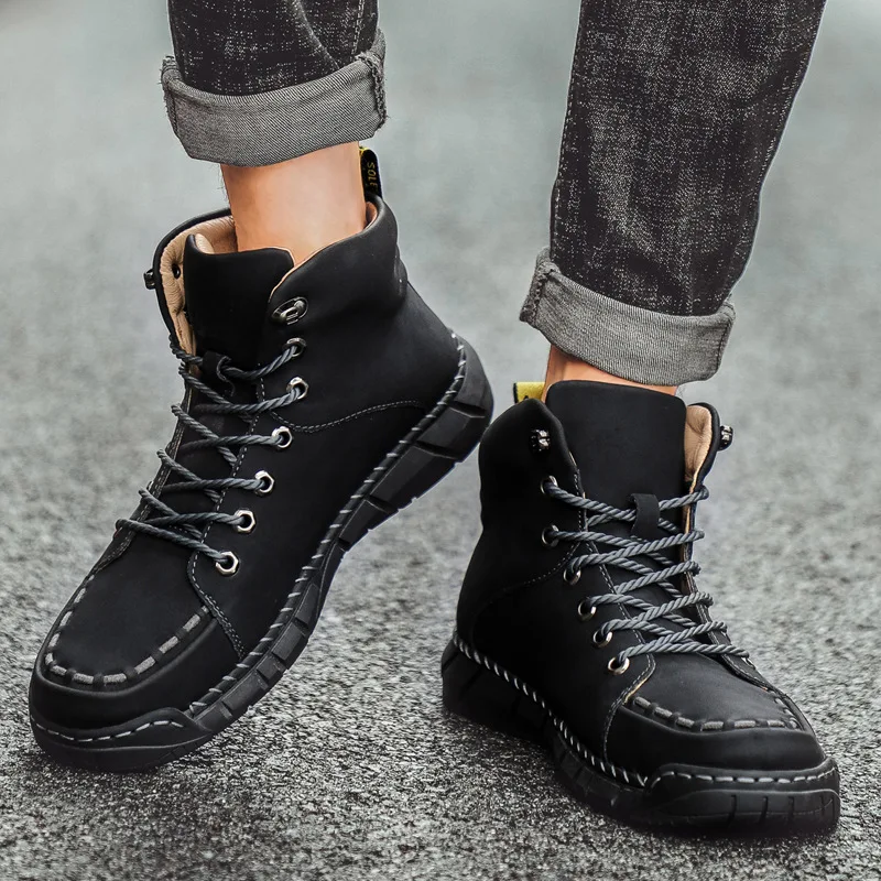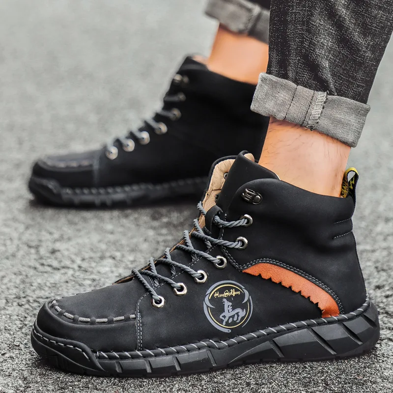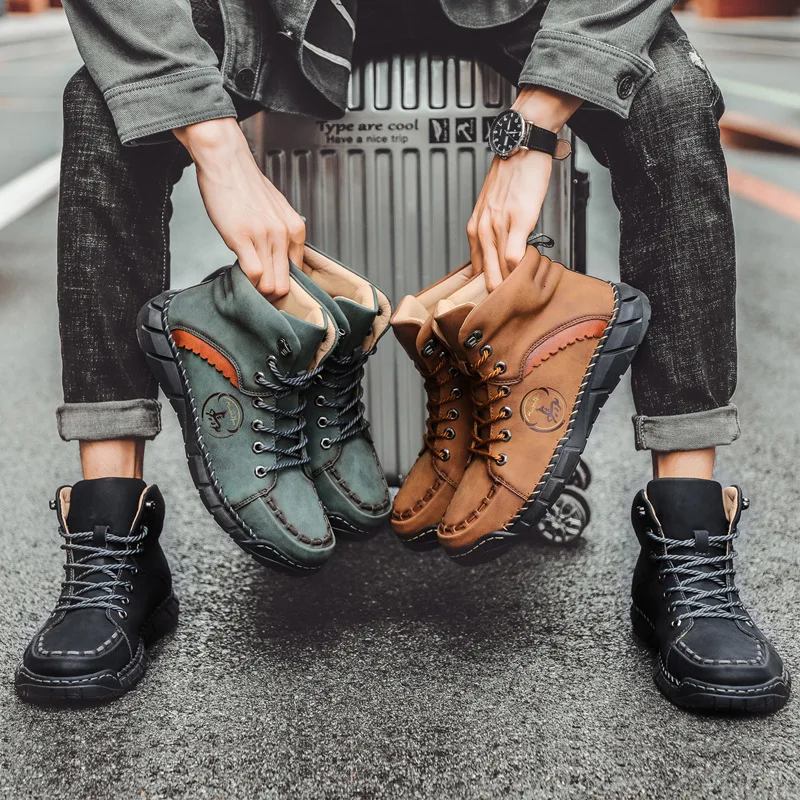 Мужские кожаные ботинки на шнуровке, коричневые удобные повседневные рабочие ботильоны, обувь для весны и осени, 2020
