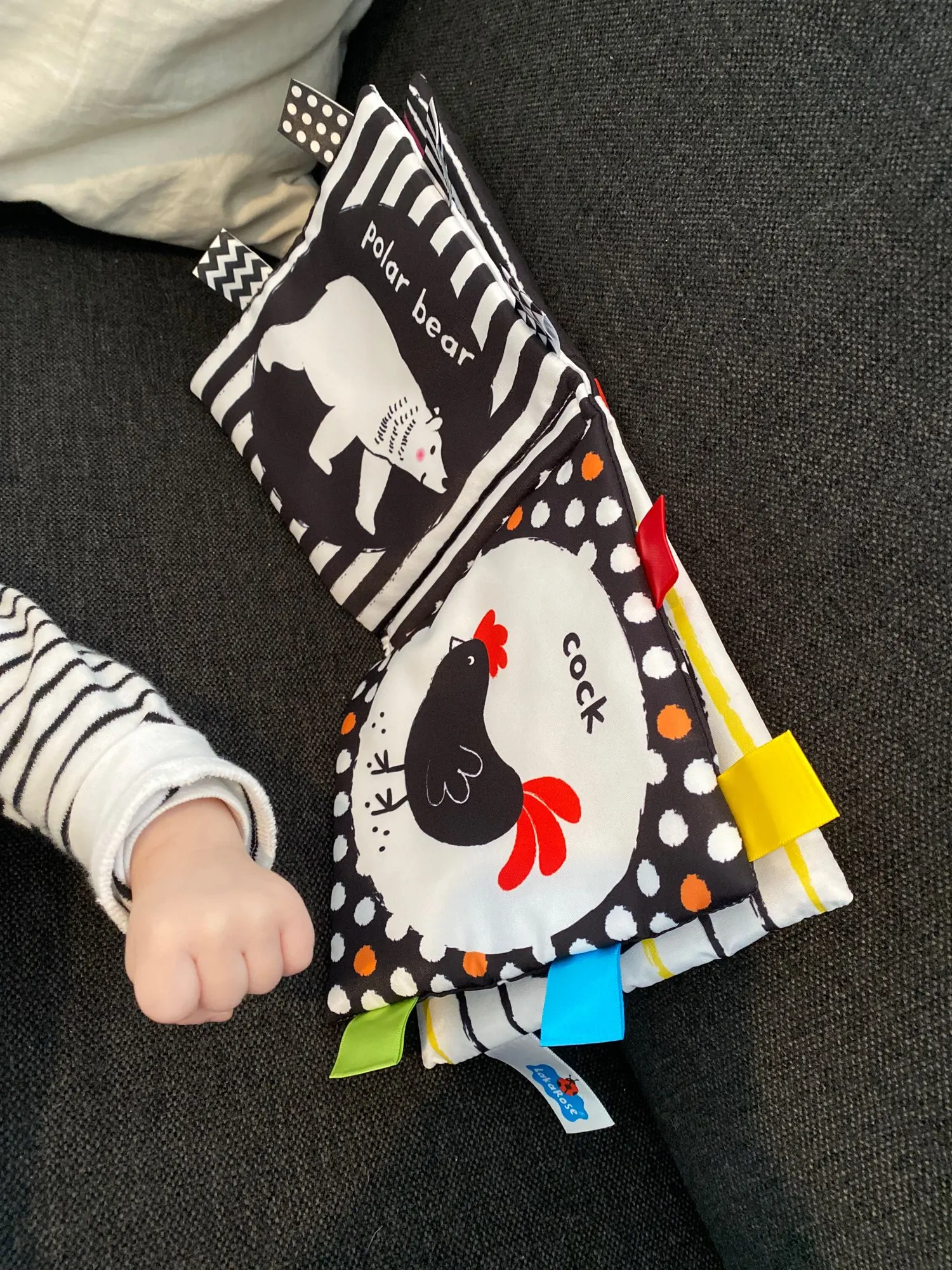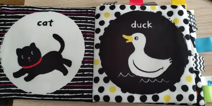 Маленькая книга в очень хорошей ткани, моя 5-месячная дочь любит приятно прикасаться и смачивать