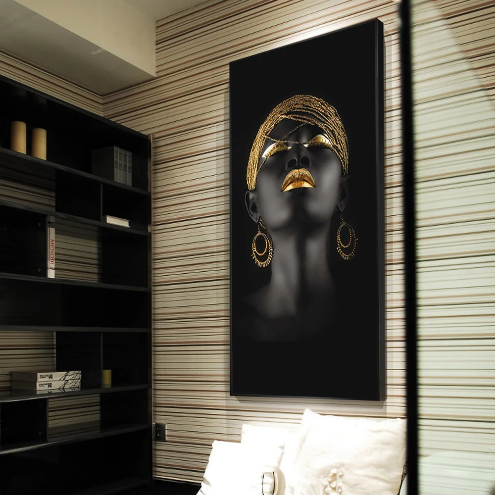 Африканская Обнаженная девушка с золотым головным убором холст картины Черные Женщины плакаты и принты настенные картины для гостиной домашний декор
