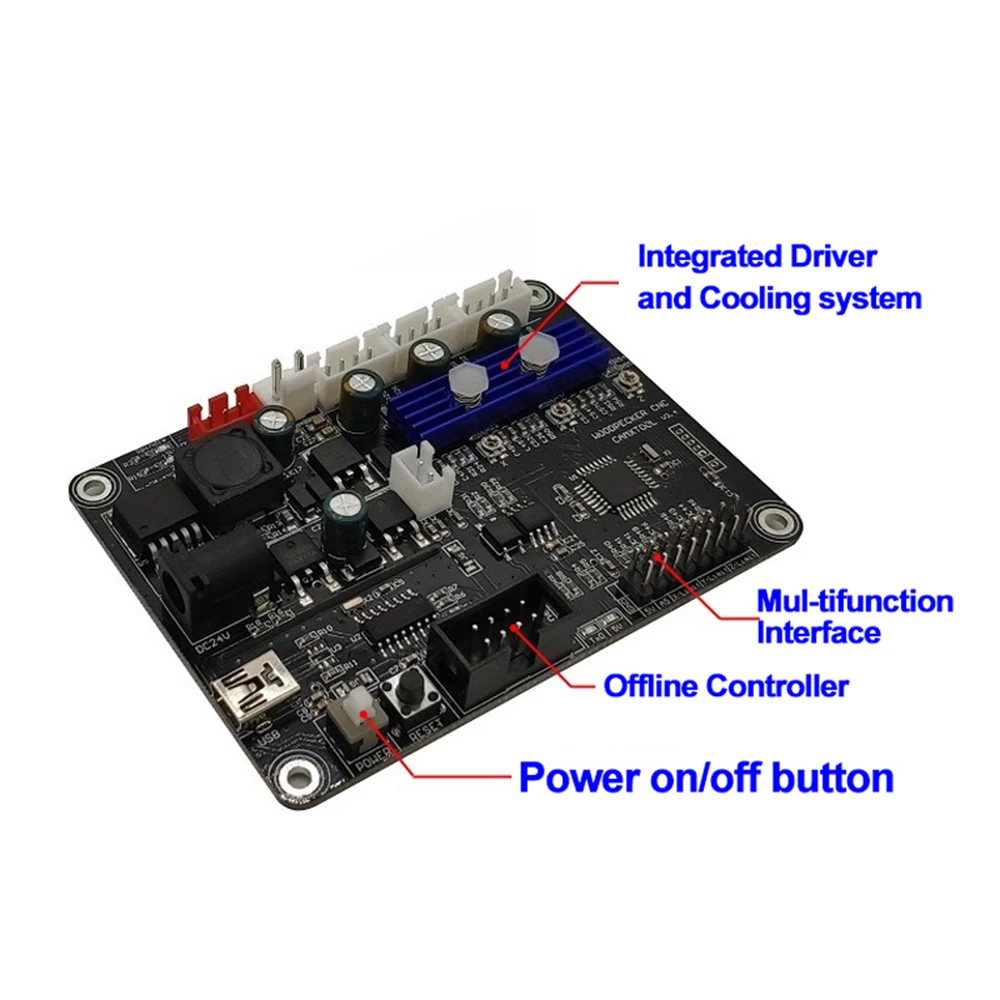 Встроенная Прошивка: GRBL 1.1f Входная мощность: 24 В постоянного тока Поддержка мощности лазера: 1 Вт/2500 мвт/3500 МВт/5500 МВт/7000 МВт/10 Вт/15 Вт Программное обеспечение: GRBLcontrol, Lasergrbl Поддержка системы ПК: Windows XP/7/8/10 Порт A5 для Z-зонда: Да Ограниченный порт переключателя: Да
