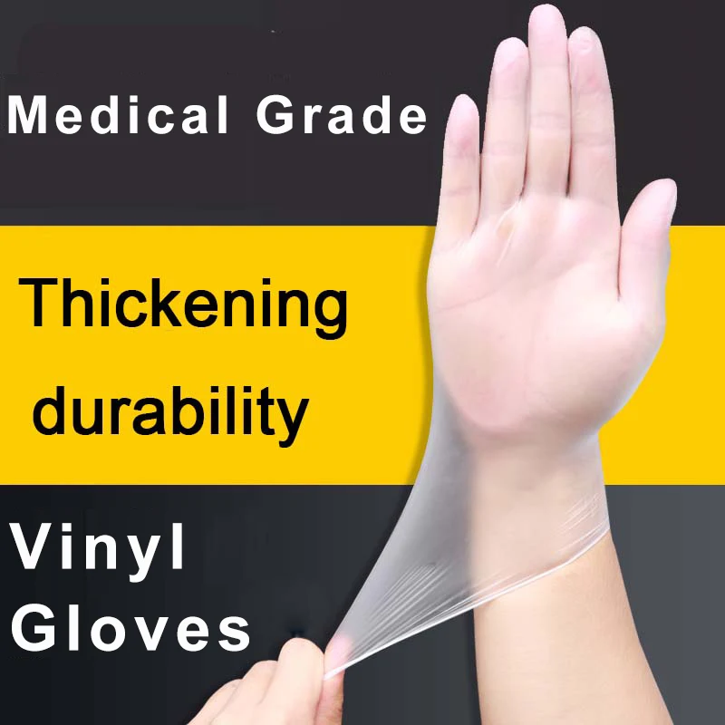 100 шт. одноразовые виниловые перчатки для осмотра, уборки еды, готовки, ресторана, кухни, работы, прозрачные защитные перчатки из ПВХ, утолщенные