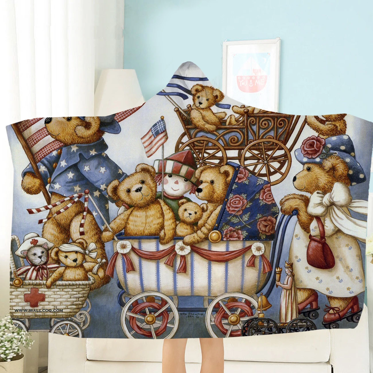 Мультяшный диван с капюшоном, одеяло, плюшевый принт с животными, плюшевое одеяло для девочек и мальчиков, Детский Рождественский подарок, Прямая поставка на заказ