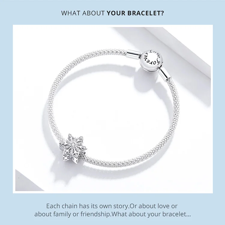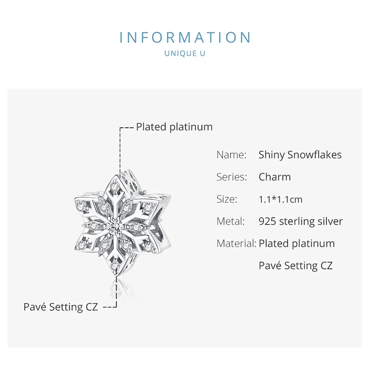 Bamoer, блестящие металлические бусины со снежинками для женщин, ювелирное изделие, Стерлинговое Серебро 925 пробы, очаровательный браслет, подходит для женщин, сделай сам, BSC368