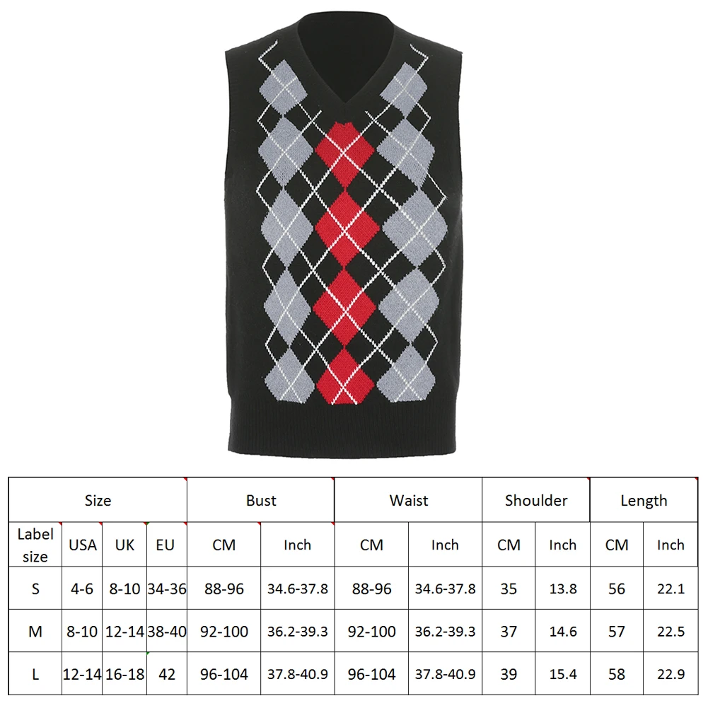Argyle вязаный женский свитер клетчатый жилет Y2k английский консервативный стиль Y2k одежда с круглым вырезом 90s эстетичный трикотаж Осенняя уличная одежда
