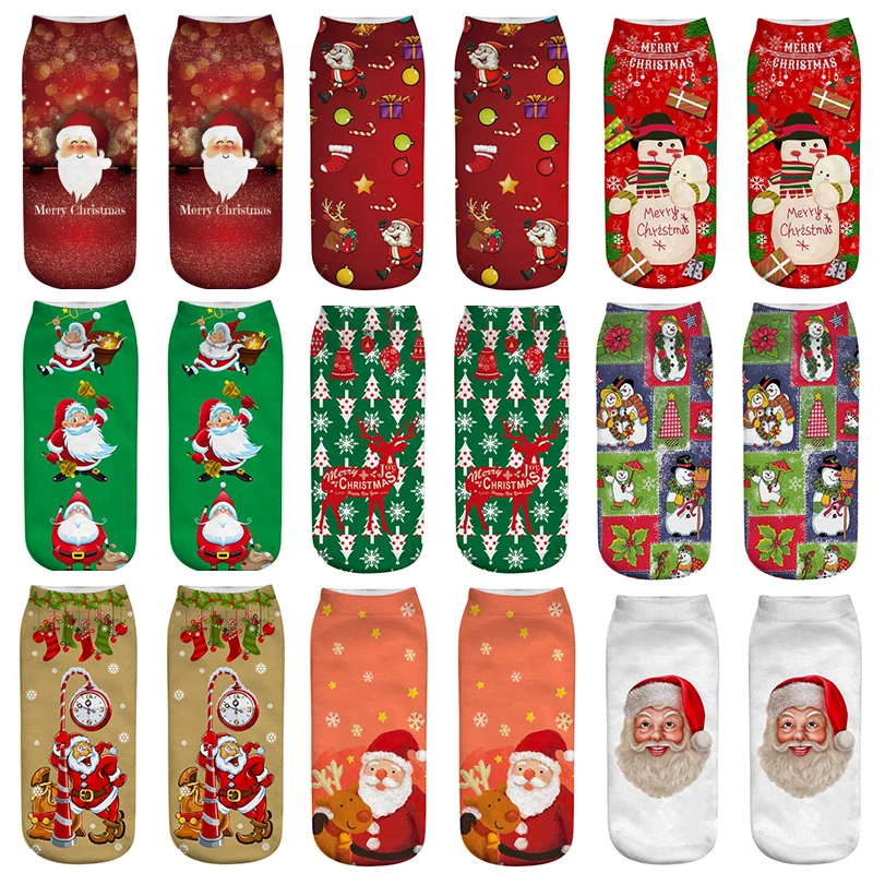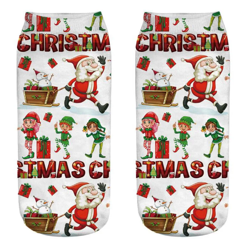Новогодние 2022 рождественские носки с 3D принтом Санта-Клаус Лось ...