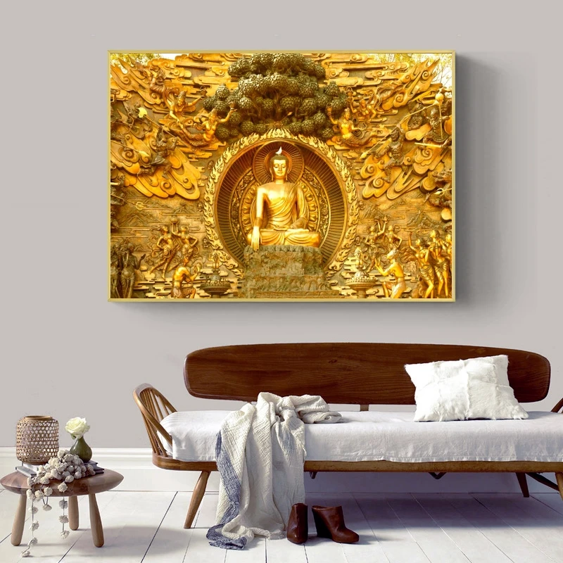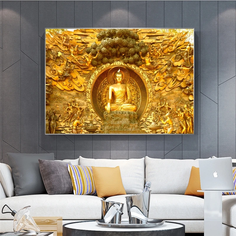 Картина маслом на холсте Золотой лорд Будды, религиозные постеры и принты, настенные картины куадроса, декор для гостиной