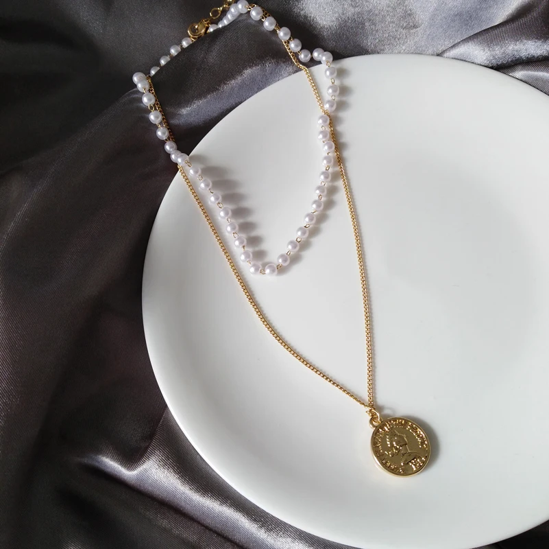 Многослойное жемчужное ожерелье для женщин, популярное винтажное геометрическое ожерелье с портретом монета с подвеской, свадебные ювелирные украшения для девушек