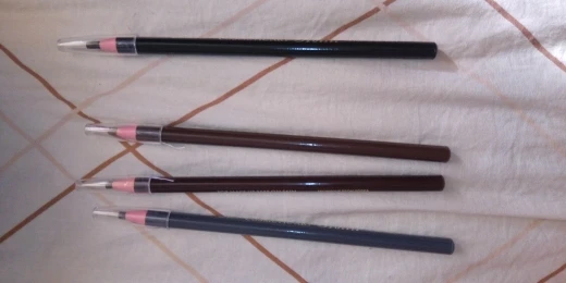 Заказала сразу два чёрные, Карандашик классный, отлично рисует бровки, для стрелок на глаза не подходит, жестковат, а для бровей самое то!!! Девочки рекомендую