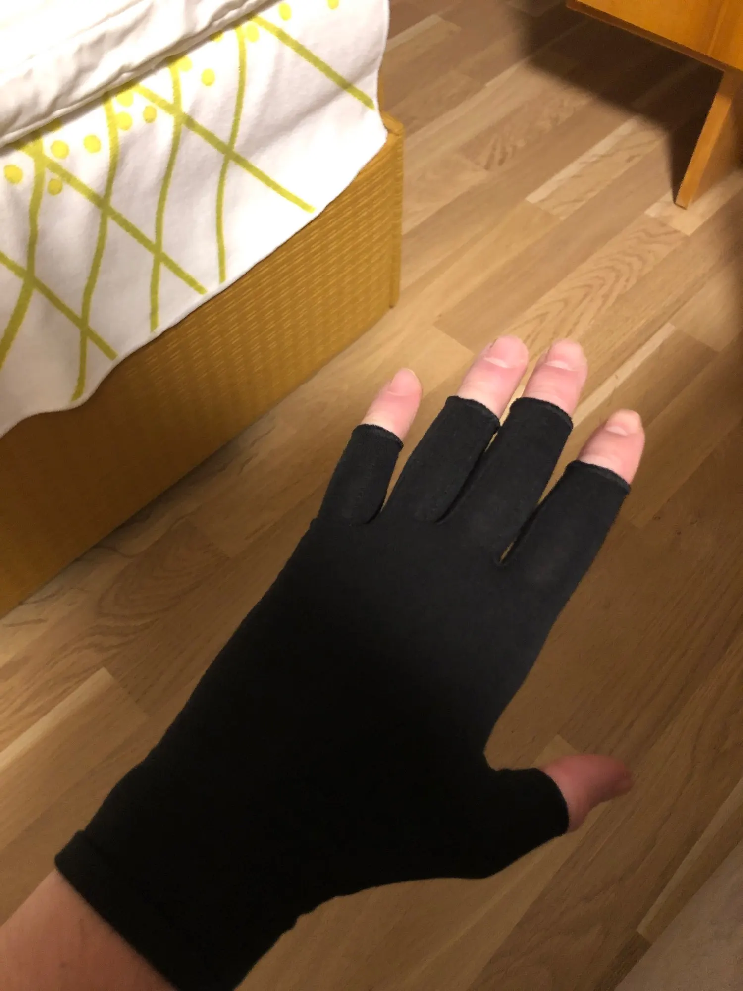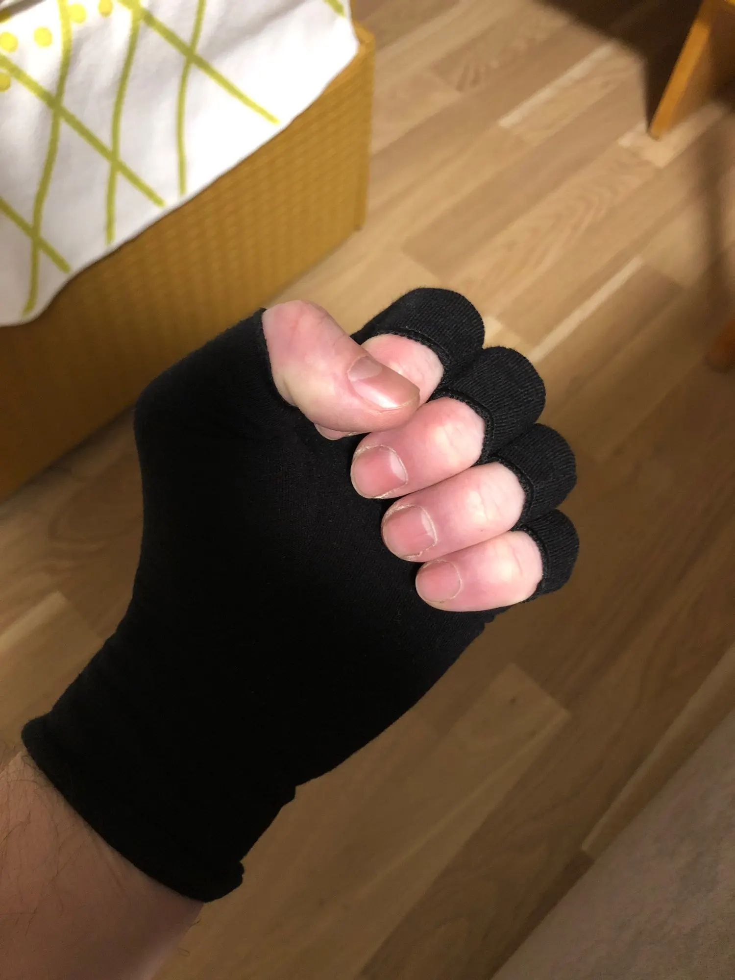 Это второй раз, когда я покупаю. Чтобы получить возмещение, а также для коллеги. Они феноменальны. Я надеваю их, чтобы спать, и утром у меня гораздо более расслабленные руки. My job is manual and Repeat. Ночью я просыпался с болятой в руках и шлемом. Эти перчатки мне больше не подходят. Честно говоря, я не знаю почему, но они действительно работают.