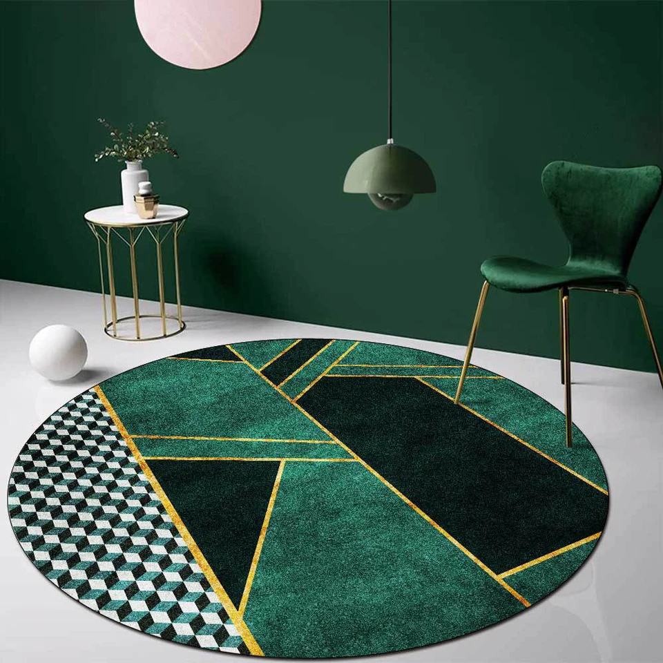 Напольный ковер для гостиной, современный большой размер, зеленый, золотой, с абстрактным рисунком гусиных лапок, круглый коврик для спальни, коврик для украшения дома