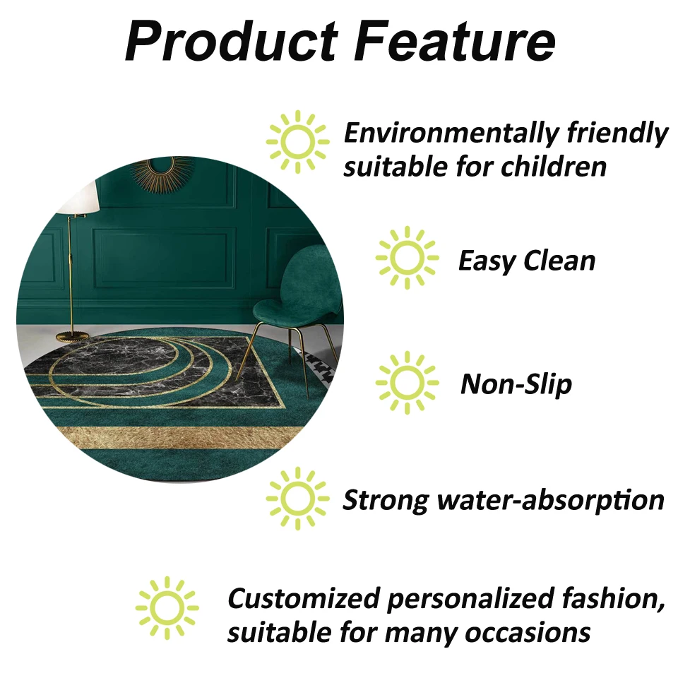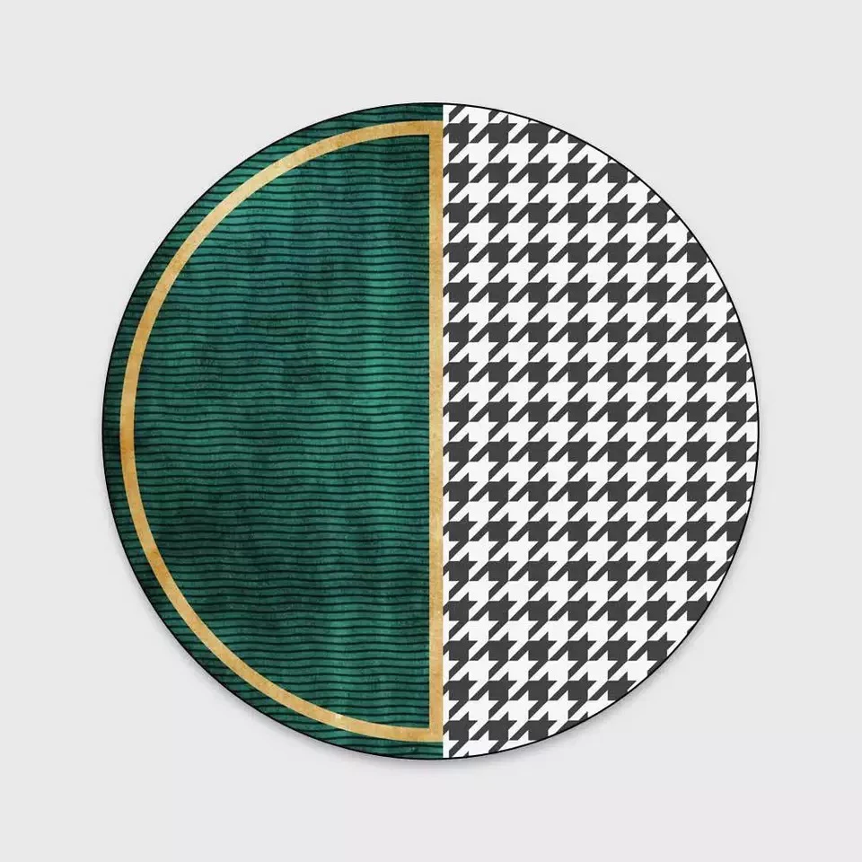 Название: напольный ковер для гостиной, современный круглый ковер большого размера с абстрактным узором в виде гусиной лапки зеленого золота для спальни, домашний декоративный коврик Материал: полиэстер Особенности: красивый цветной дизайн, мягкий и удобный, не выцветает, не скользит. Применение: гостиная, спальня, Прачечная, вход, квартира, детская комната, детская комната. * На самом деле, вы можете использовать его в любом удобном для вас месте.