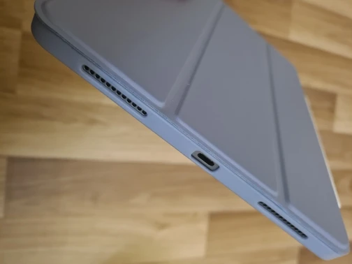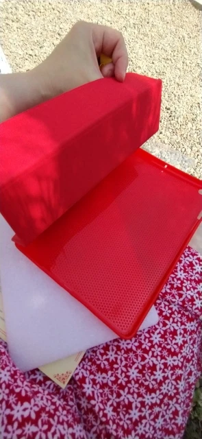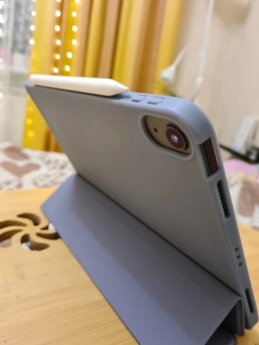 Очень приятный чехол, задняя сторона слегка просвечивает, но хорошо скрывает мелкие дефекты (яблоко на планшете слегка пошло пятнами, из-за этого выбор пал на непрозрачный чехол), цвет приятный розовый, немного уходит в лосось, но все равно розовый (постаралась максимально корректно передать цвет при дневном/холодном освещении)