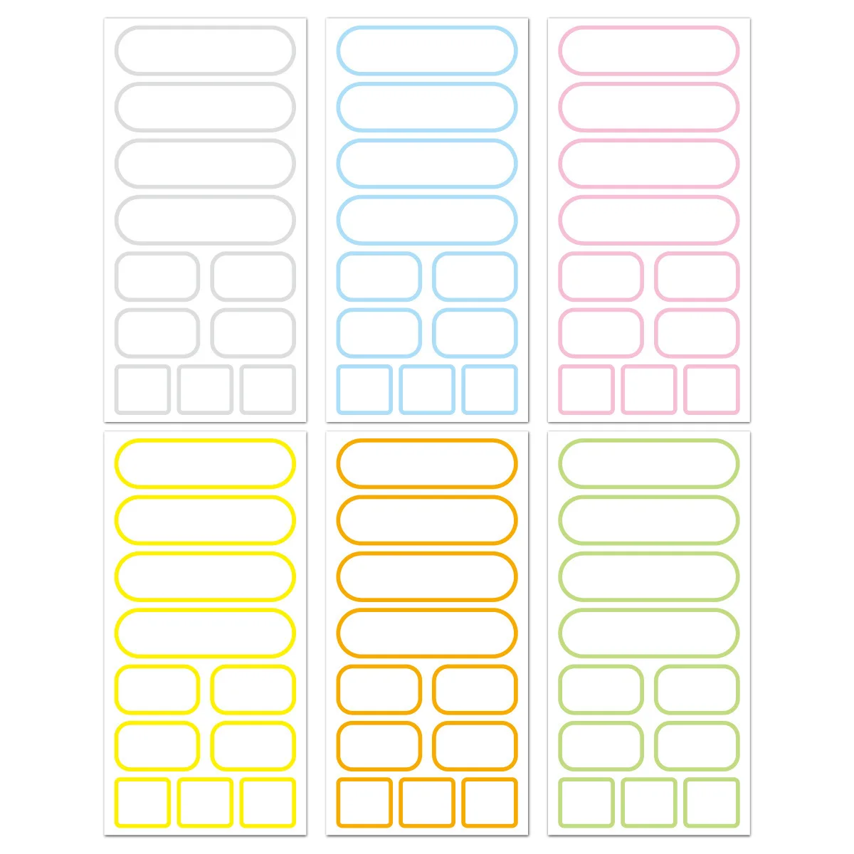 Эти наклейки для этикеток в кладовой имеют цветную рамку на кромке, спроектированную как 3 различных формы, такие как полоса, прямоугольник и квадратный узор, различные формы, чтобы удовлетворить ваши многократные использования и сочетать с различными контейнерами