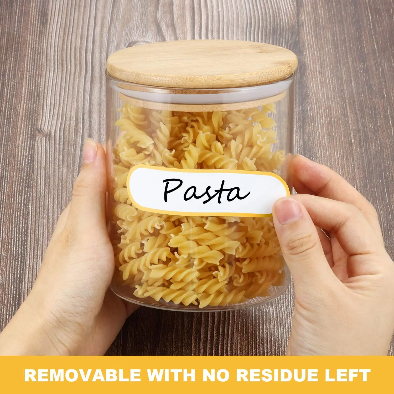 Эти клейкие наклейки для этикеток подходят для различных размеров контейнеров для хранения пищевых продуктов, подходит для желе, специй, варенья, трав, конфет, печенья или контейнеры для приправ, консервных банок, круглых бутылок, бокалов для вина, кофейные чашки или чайные коробки, канистры, папки, офисные принадлежности, школьные ящики, широко применимые дома, Кладовая, Прачечная, шкаф, ванная комната, льняной шкаф и многое другое.