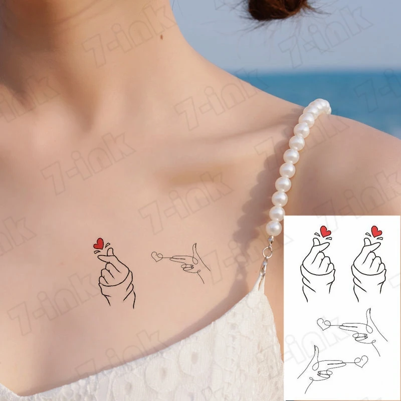 Водостойкая временная татуировка, наклейка на палец, минималистичный пистолет в форме сердца, переводная татуировка на воду, поддельные флеш-тату для мужчин и женщин