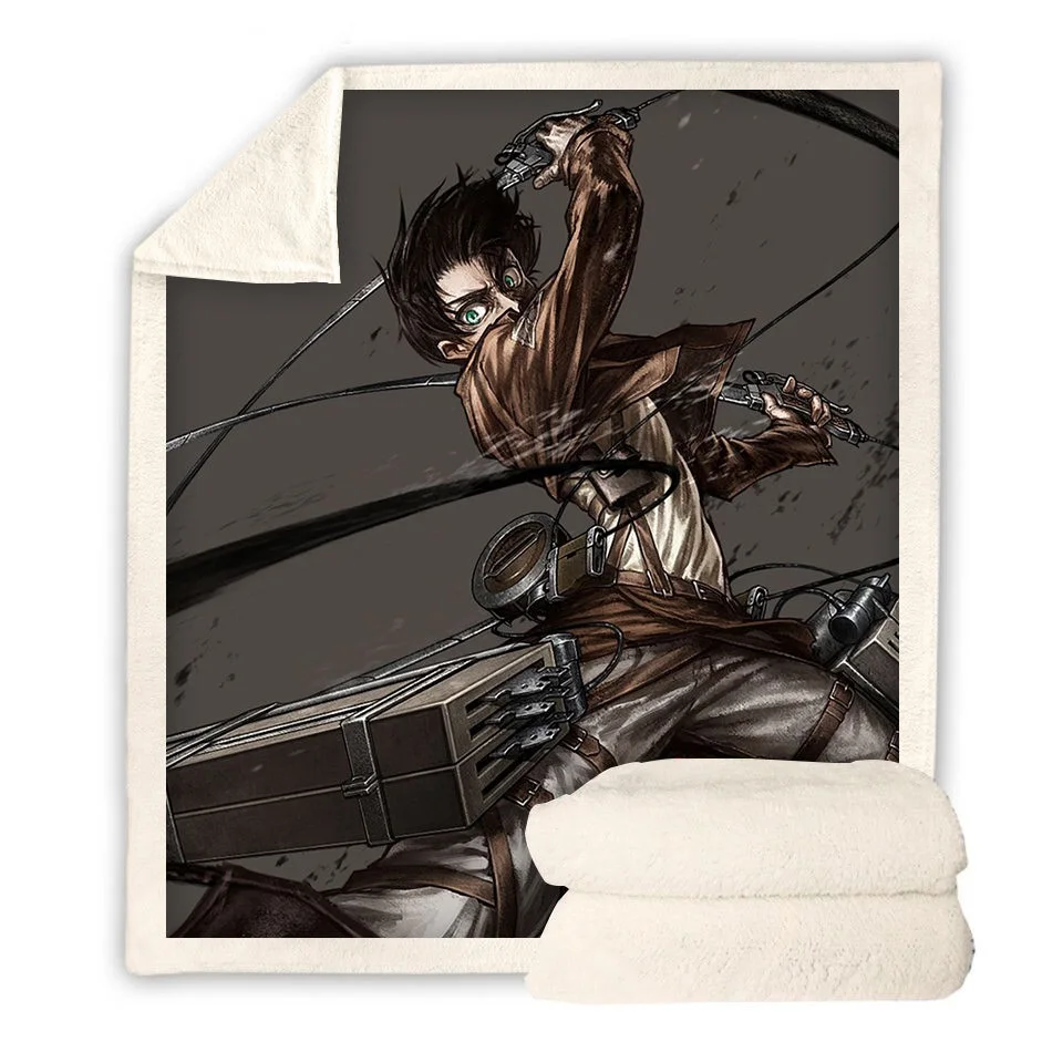 Пледы одеяло аниме атака на Титанов 3D бархатное плюшевое одеяло по...