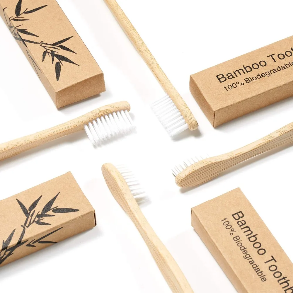 Биоразлагаемая Экологически чистая натуральная бамбуковая зубная щетка es BPA Free мягкая щетина Compostable, веганская Органическая многоразовая деревянная зубная щетка (10 упаковок)