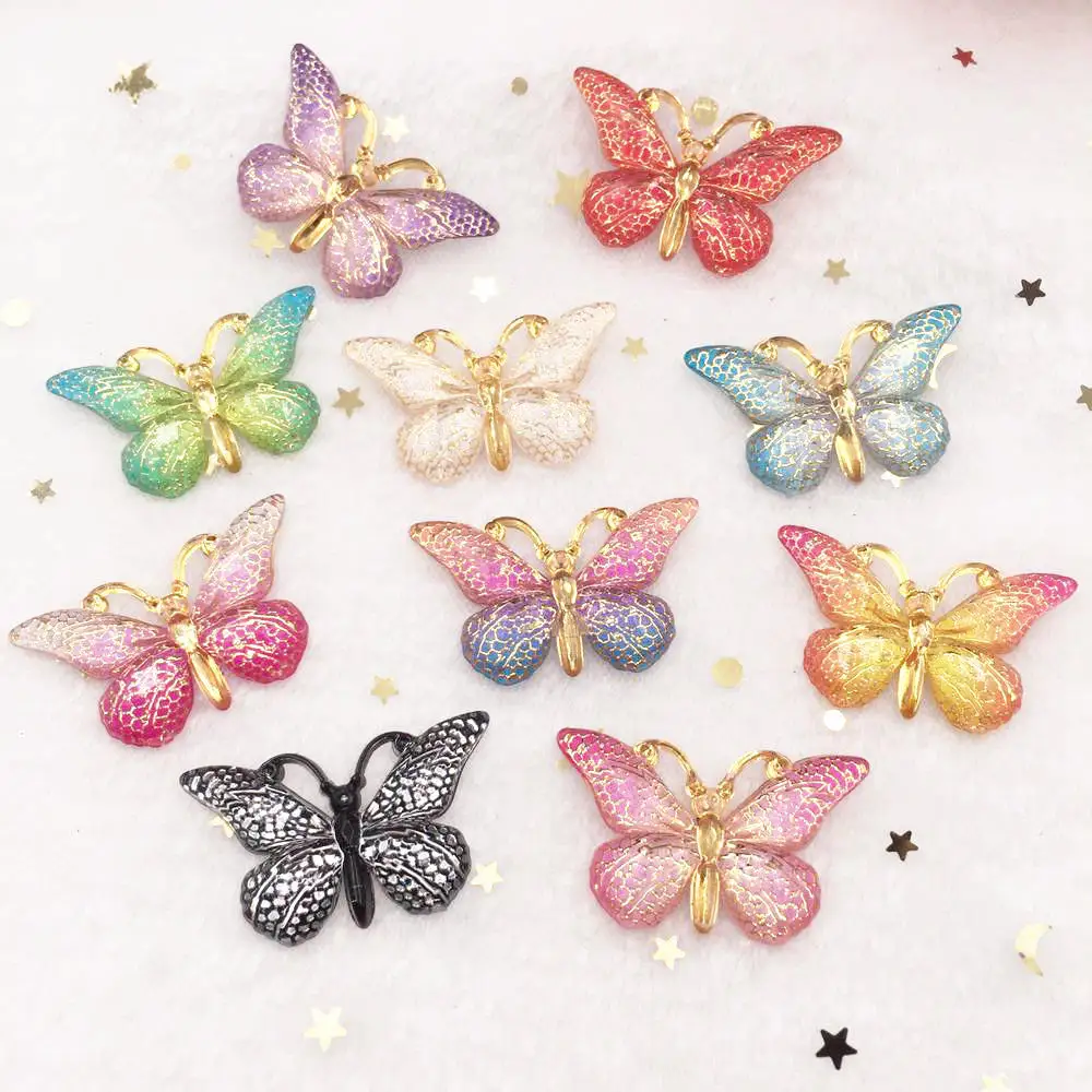 Блестящие красочные бабочки плоские стразы камни 10 шт. Сделай Сам свадьба 1 отверстие аппликация скрапбук ювелирные изделия DIY ремесло поставки OW75